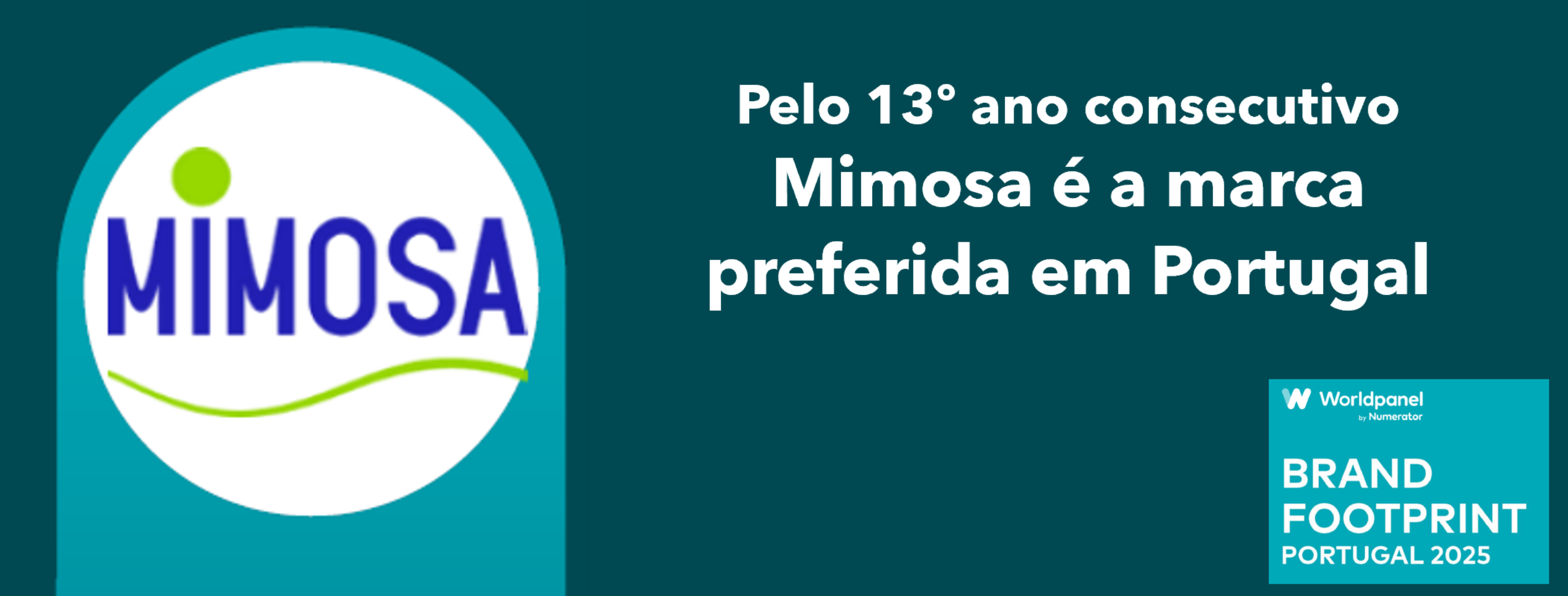 A Mimosa foi novamente distinguida como a marca preferida dos portugueses na categoria de Bens de Grande Consumo, liderando, pelo 13.º ano consecutivo, o ranking Brand Footprint 2025, elaborado pela Kantar Worldpanel.